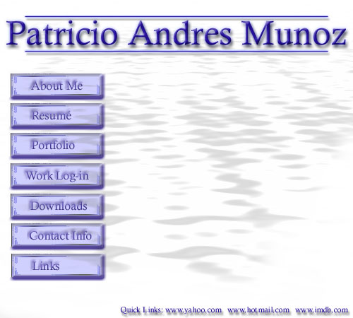 Learn about me! Available to view online and for download View my online porfolio Click here to access my hours Download songs, applications and movies Contact me View more of my favorite links Visit the Yahoo! Search Engine Check your Hotmail account Visit the number one movie resource online!